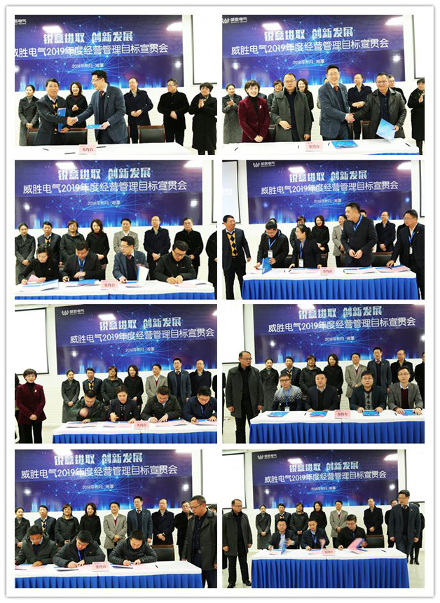 接著,由電氣經(jīng)營管理團隊責任人向電氣總裁簽署2019年目標承諾書,各事業(yè)部副總經(jīng)理、總工及市場營銷等責任人簽署2019年目標責任書。