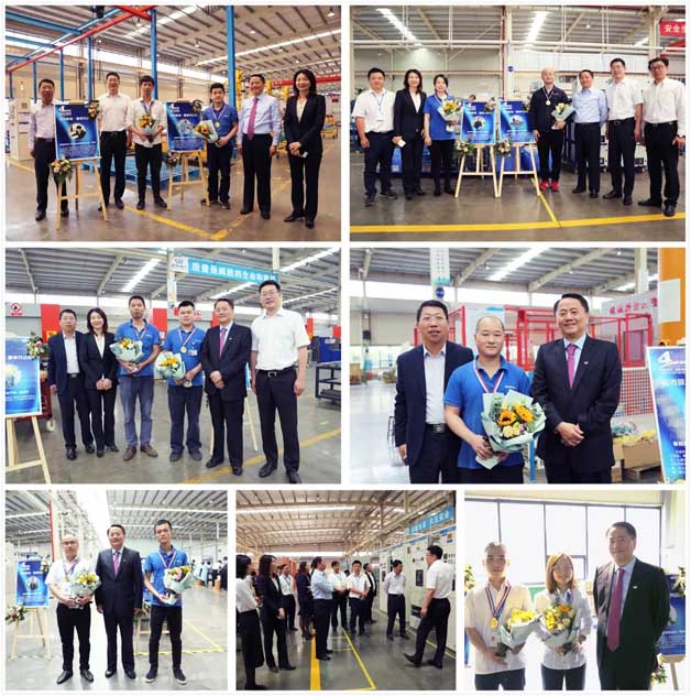 儀式后,吉主席等一行領(lǐng)導(dǎo)還特別慰問(wèn)了一線工人,并為“愛(ài)崗敬業(yè)、最美勞動(dòng)者”獲獎(jiǎng)人員進(jìn)行現(xiàn)場(chǎng)頒獎(jiǎng),吉主席親手送上的鮮花和金燦燦的獎(jiǎng)牌給予了他們莫大的鼓舞,同時(shí)也激勵(lì)著所有電氣人向最美看齊,看優(yōu)秀看齊!