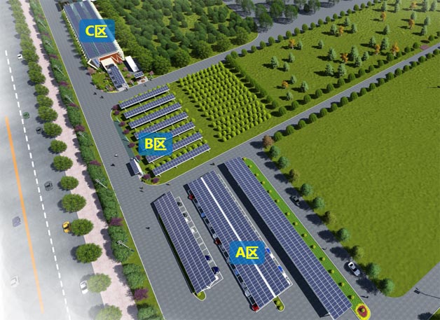 正在建設(shè)中的A區(qū)將包含光儲(chǔ)充車(chē)棚及管運(yùn)一體化系統(tǒng),集中展示光伏發(fā)電、儲(chǔ)能、汽車(chē)充電、智能停車(chē)管理、智慧充電運(yùn)營(yíng)等新能源應(yīng)用。