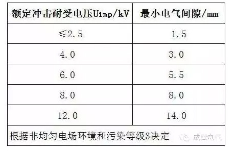 ——通過目測檢查不明顯大于下表中給出的值時,應通過實際測量或依據沖擊電壓耐受試驗要求進行驗證。