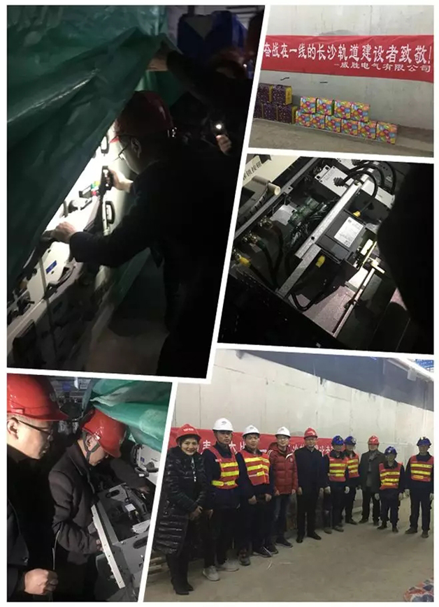 伴隨冰凍災害天氣的侵擾,南方連綿不絕的陰雨也極大的增加了項目的難度,對此,威勝電氣領導層及項目負責人親自帶隊多次冒雨前往長沙地鐵四號檢查已交付的環控電控柜設備防潮保護情況,對接下來的梅雨季節設備防護問題作了進一步工作布置,并與供電施工方中鐵十二局同仁進行了現場交流,確保施工執行過程中萬無一失。