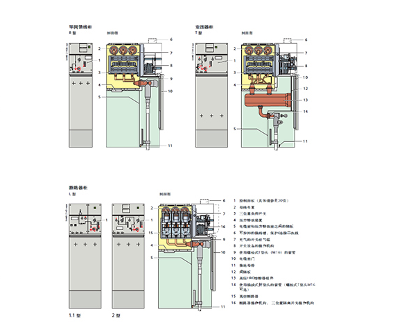 —對于環網饋線柜和斷路器柜,采用螺栓式T型頭(M16)