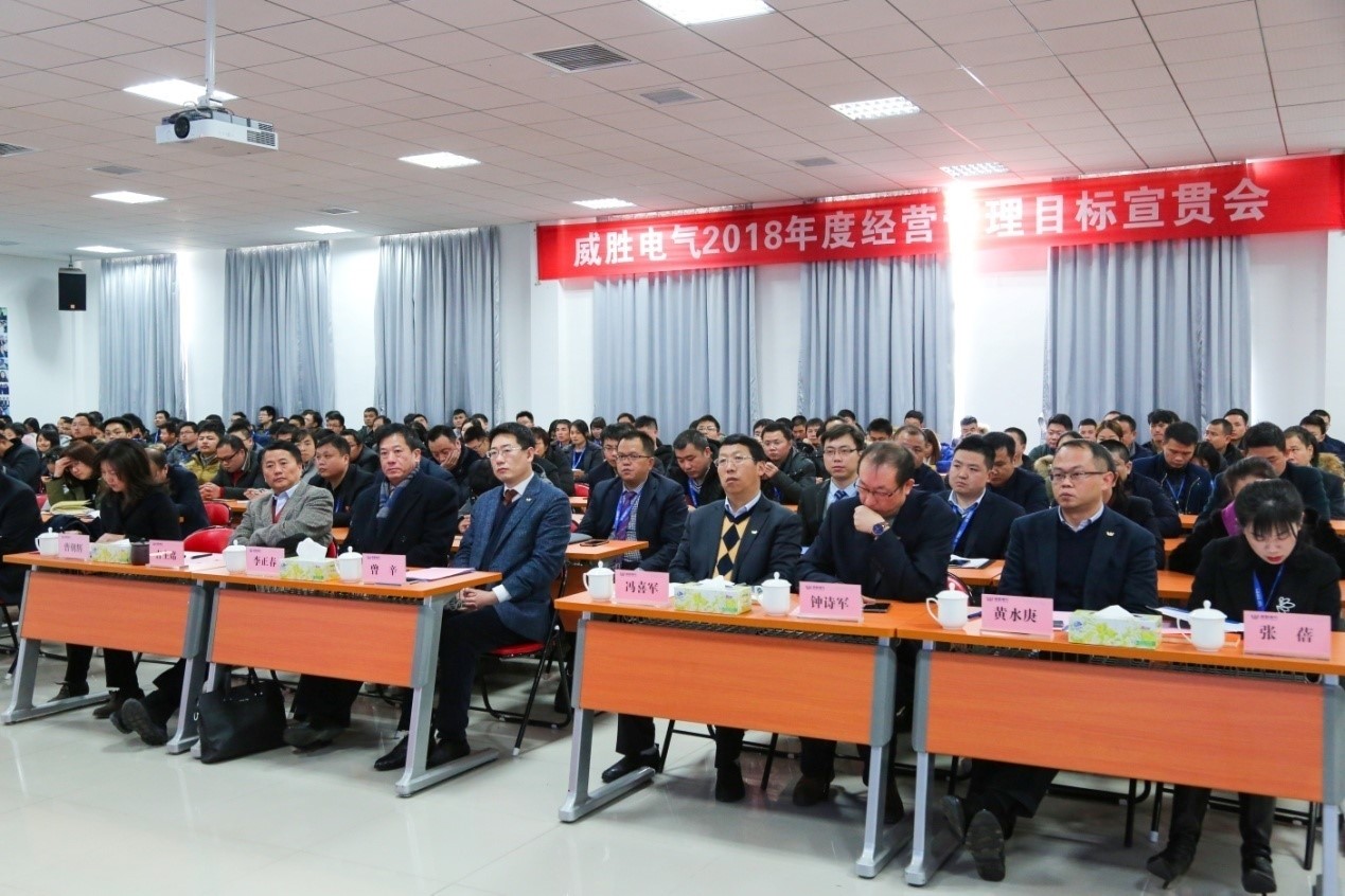 2018年經營管理目標宣貫會共三個階段:首先,會議宣讀了2018年威勝電氣總裁任命、電氣經營管理團隊和銷售負責人的人事任命。
