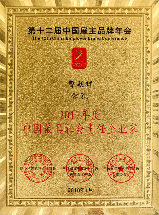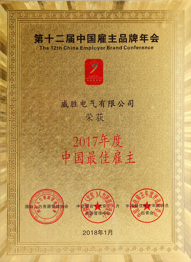 中國(guó)雇主品牌論壇組委會(huì)經(jīng)多年最佳雇主調(diào)研數(shù)據(jù)庫(kù)和《北大商業(yè)評(píng)論》、《中國(guó)品牌》、搜狐財(cái)經(jīng)、新浪財(cái)經(jīng)等20多家合作媒體評(píng)審,威勝電氣有限公司榮獲2017年度中國(guó)最佳雇主企業(yè),曹朝輝董事長(zhǎng)榮獲中國(guó)最具社會(huì)責(zé)任企業(yè)家。