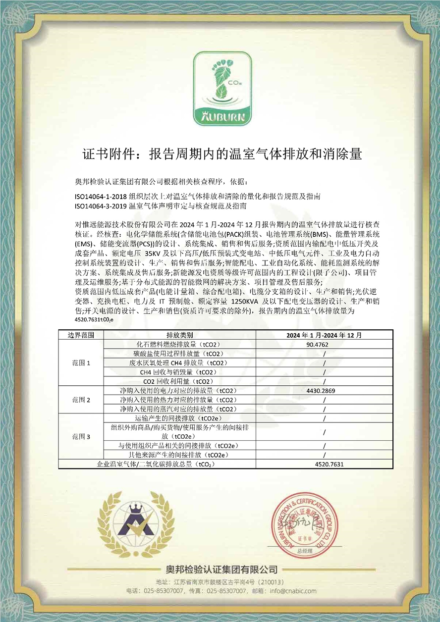 近日,通過(guò)奧邦檢驗(yàn)認(rèn)證集團(tuán)有限公司的核查,依據(jù)ISO14064-1-2018組織層次上對(duì)溫室氣體排放和清除的量化和報(bào)告規(guī)范及指南及ISO14064-3-2019溫室氣體聲明審定與核查規(guī)范及指南,惟遠(yuǎn)能源技術(shù)股份有限公司的溫室氣體清單(2024.1-2024.12)符合ISO14064-1-2018、ISO14064-3-2019標(biāo)準(zhǔn)要求,在2024年度總排放量為:4520.7631噸二氧化碳當(dāng)量。順利獲得溫室氣體核查聲明。