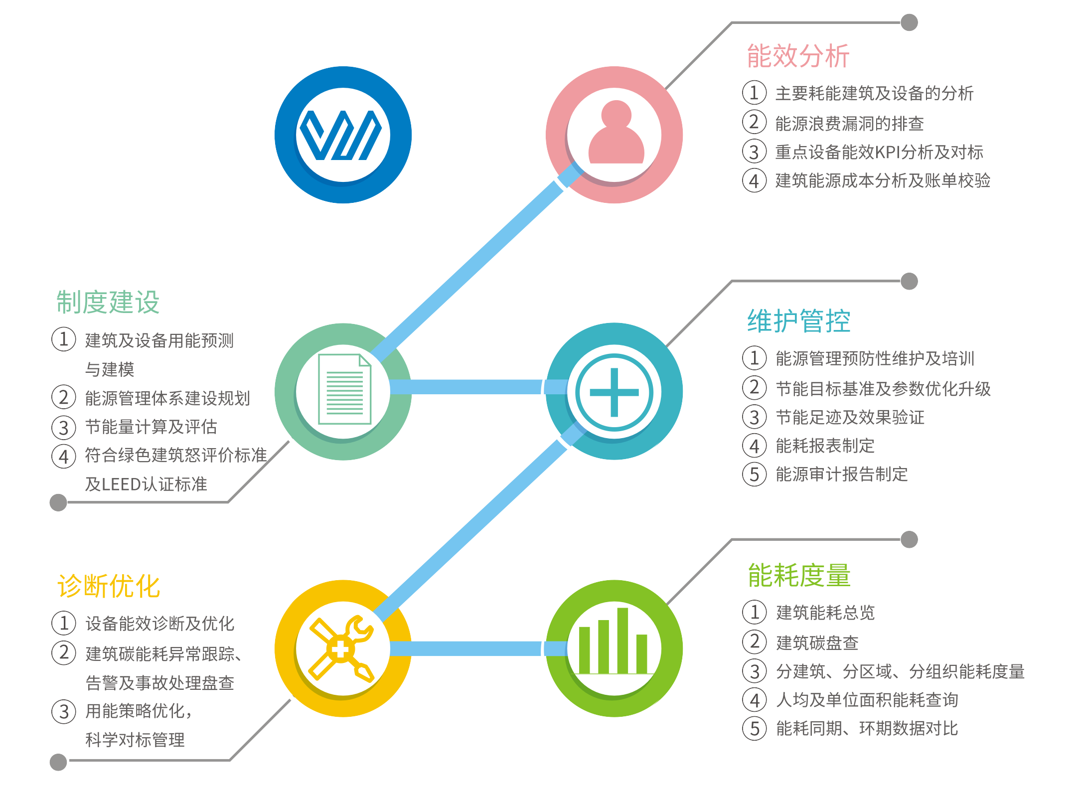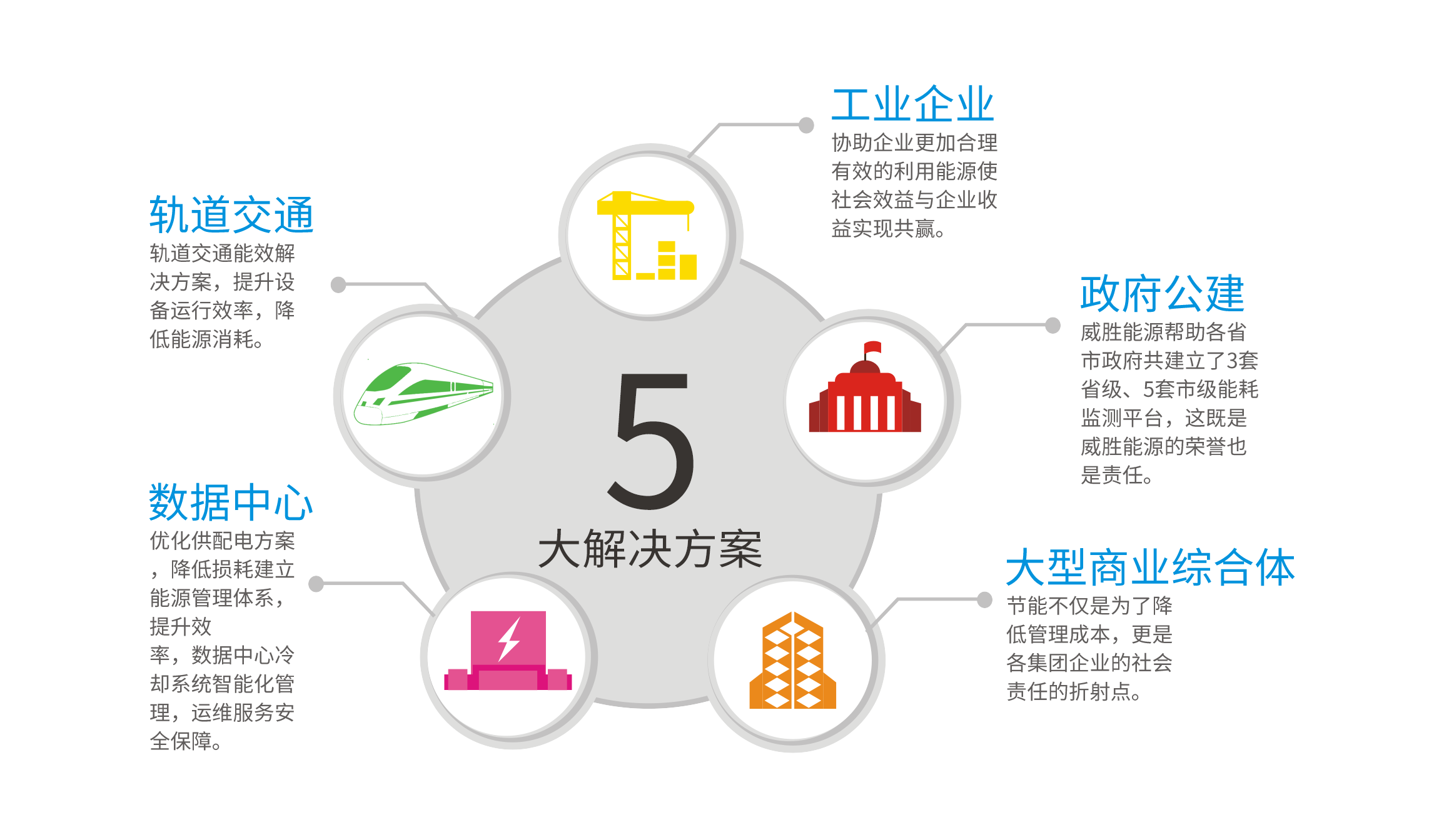 威勝的整體能效解決方案,是針對工業企業、軌道交通、數據中心、大型商業綜合體、政府公建等大型用電客戶構建的一套用能解決方案。該方案包括水、電、氣、熱等多種能源種類,以能源購入、能源存儲、能源消耗等能源使用過程為導向的全生命周期用能管理方案,竭力幫助用戶減少能源損耗、提高能源利用率。